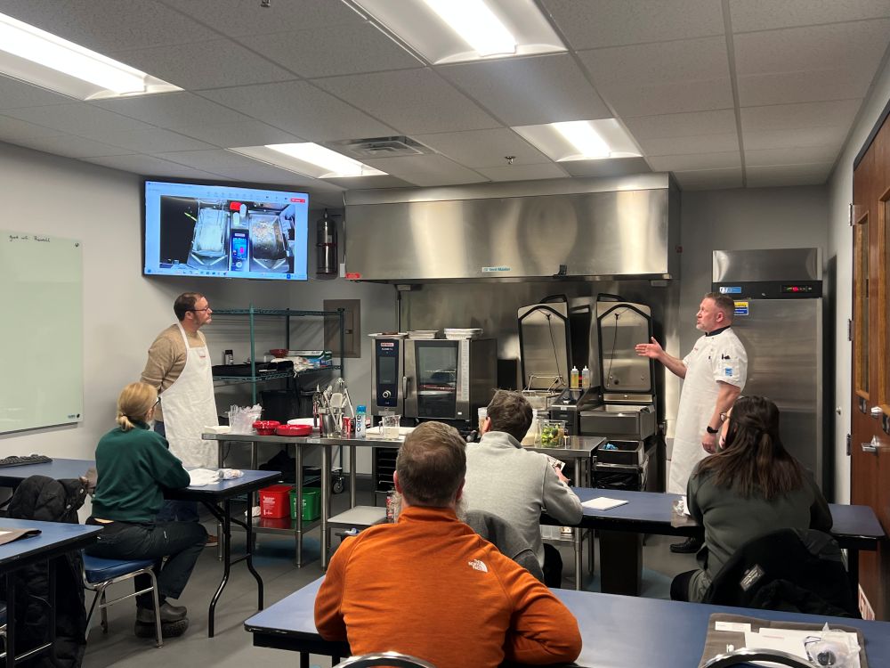 During the event, our guest chef, Jason Finney, showcased the iVario Pro’s versatility with stir fry, risotto, and caramel sauce. As attendees asked questions, the chef emphasized how the system enhances kitchen efficiency and food quality, noting, “iVario Pro Cooks with You” while the “iCombi Pro Cooks for You.”